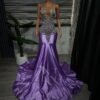 Elevate your style with this luxurious purple dress, crafted to exude elegance and glamour at every angle. Perfect for proms, wedding receptions, or any special occasion, this gown is designed to captivate and turn heads. Every detail has been thoughtfully designed to create a piece that radiates sophistication and refined beauty.