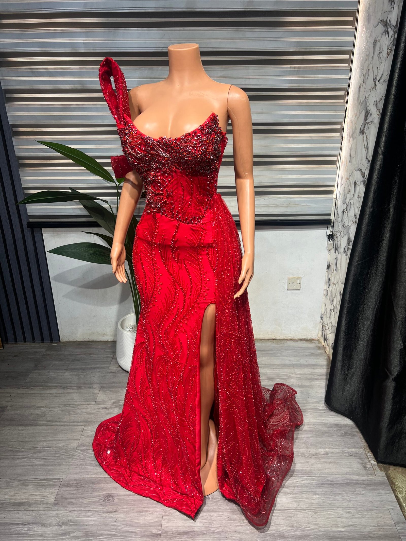 Elevate your style with this luxurious red dress, crafted to exude sophistication and glamour at every angle. Perfect for proms, wedding receptions, or any special occasion, this gown is designed to captivate and turn heads. Every detail has been thoughtfully designed to create a piece that radiates elegance and refined beauty.