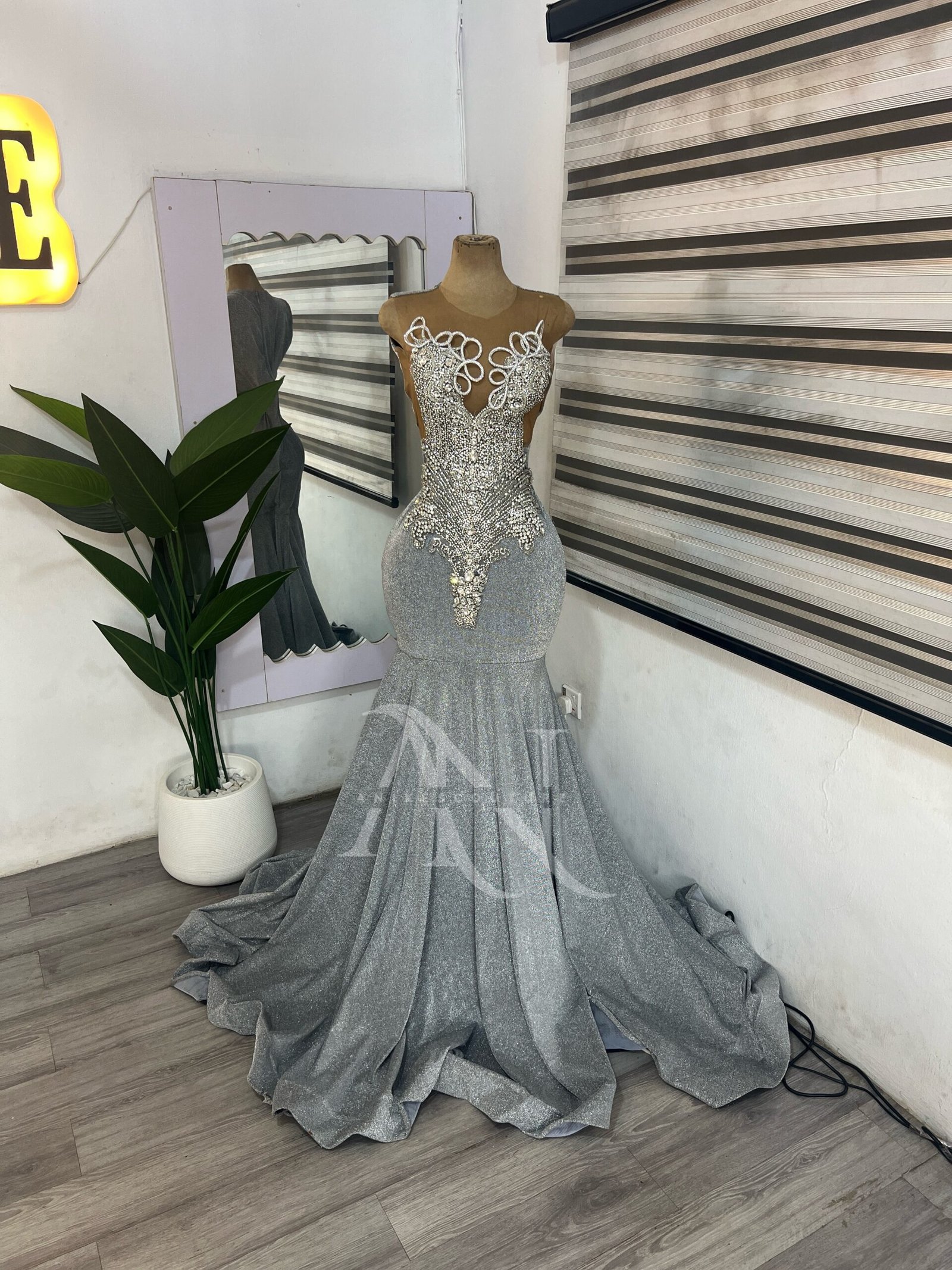 Elevate your style with this luxurious blue dress, crafted to exude elegance and glamour at every angle. Perfect for proms, wedding receptions, or any special occasion, this gown is designed to captivate and turn heads. Every detail has been thoughtfully designed to create a piece that radiates sophistication and refined beauty.