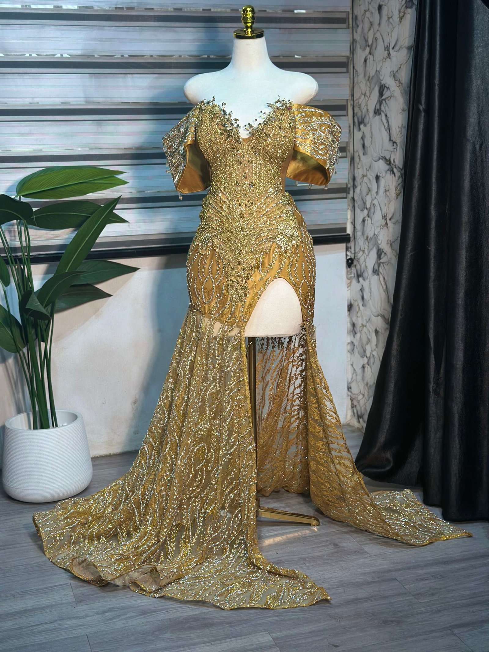 Elevate your style with this brown luxurious dress, crafted to exude elegance and glamour at every angle. Perfect for proms, wedding receptions, or any special occasion, this gown is designed to captivate and turn heads. Every detail has been thoughtfully designed to create a piece that radiates sophistication and refined beauty.