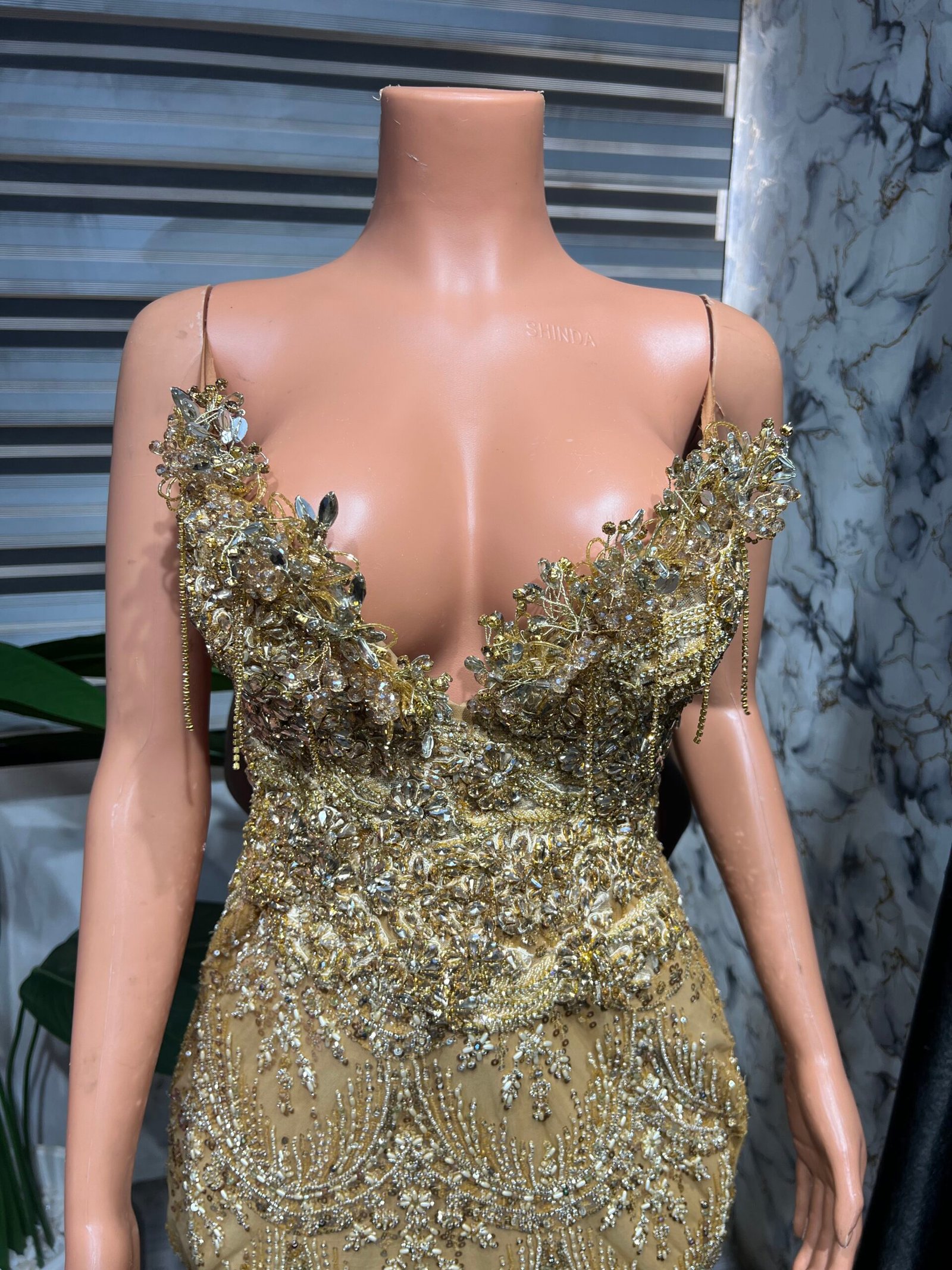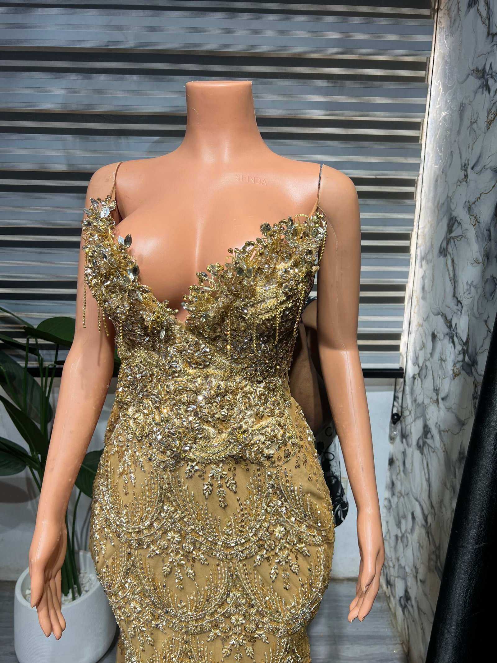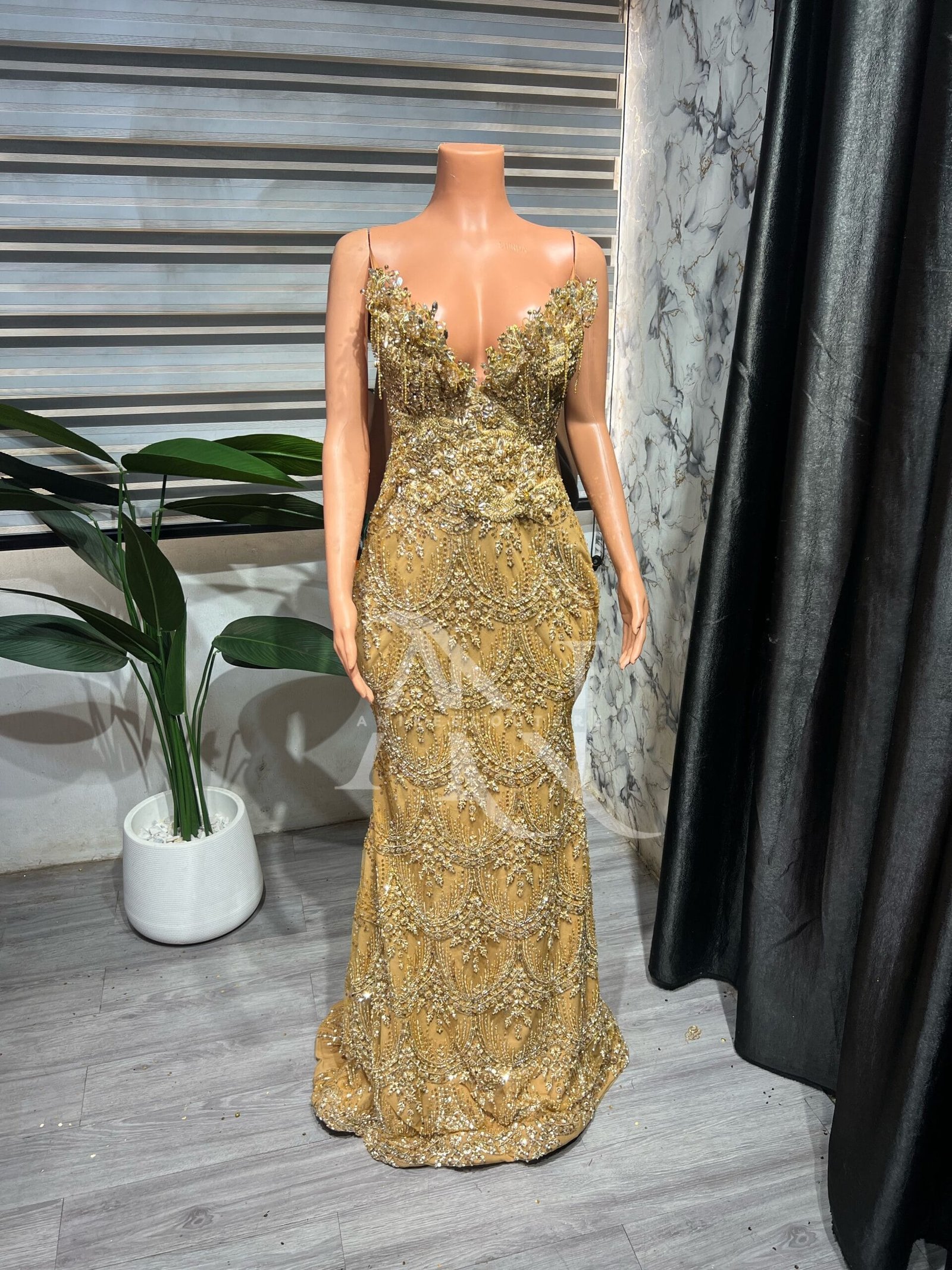 Elevate your style with this luxurious gold dress, crafted to exude elegance and glamour at every angle. Perfect for proms, wedding receptions, or any special occasion, this gown is designed to captivate and turn heads. Every detail has been thoughtfully designed to create a piece that radiates sophistication and refined beauty.